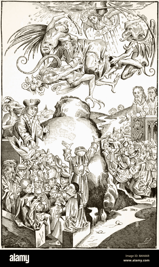 Catholic authorities responded with equally potent counter-imagery, depicting Luther himself with demonic attributes. The remarkable “Septceps Lutherus” (Seven-Headed Luther) pamphlet showed the reformer as a seven-headed monster directly referencing the beast of Revelation, while other Catholic propaganda depicted him consulting with demons or destroying the Church. This visual battle demonstrated how thoroughly Antichrist imagery had become detached from its eschatological origins to serve immediate political objectives, establishing patterns of demonizing opponents that would persist in political cartoons for centuries.